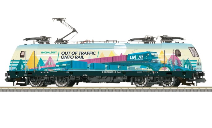 So könnte man das Motto der belgischen LINEAS frei übersetzen. Die Lok 186 252-3 ziert ein besonderes Design. Und mit dem Slogan OUT OF TRAFFIC - ONTO RAIL entspricht sie sicher auch dem Wunsch eines jeden Modelleisenbahners. Die Lok ist wegen ihrer Mehrsystemfähigkeit vor Güterzügen in ganz Europa im Einsatz.