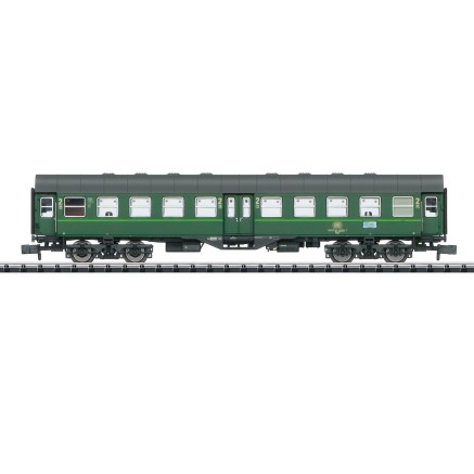 Das neu konstruierte MINITRIX Modell stellt den Betriebszustand um 1985 dar. Der Wagen trägt die damals aktuelle Farbgebung der Schnellzugwagen. Das Modell besitzt Kurzkupplungskinematik und kann mit einer Innenbeleuchtung nachgerüstet werden.